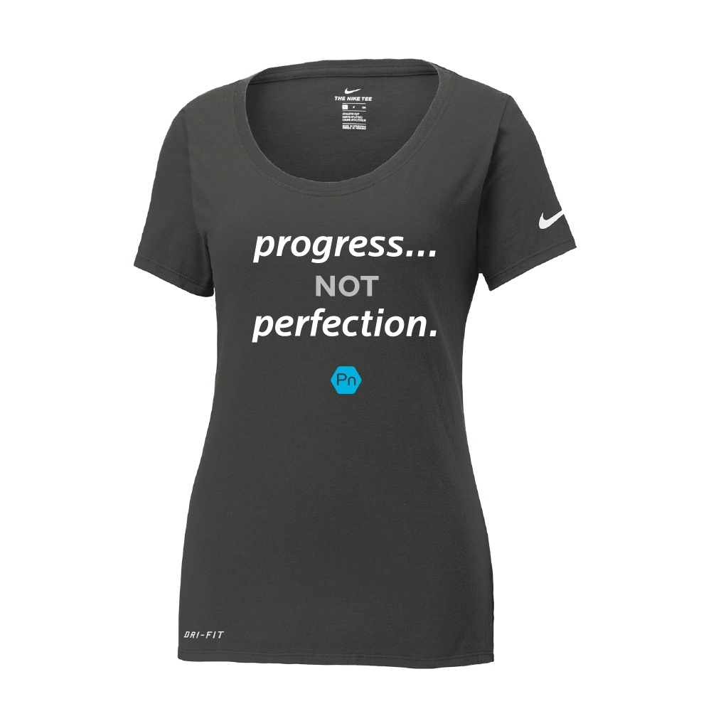 Women’s PN “Progress not Perfection.” Nike Dri Fit Scoop Neck Tee